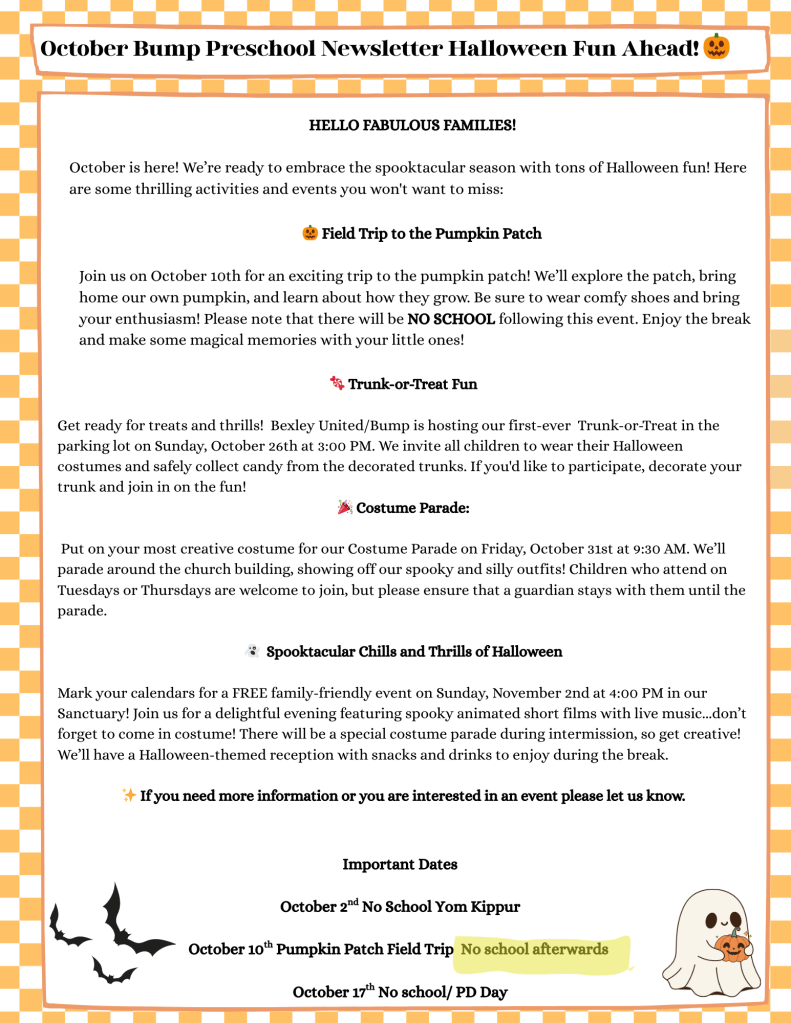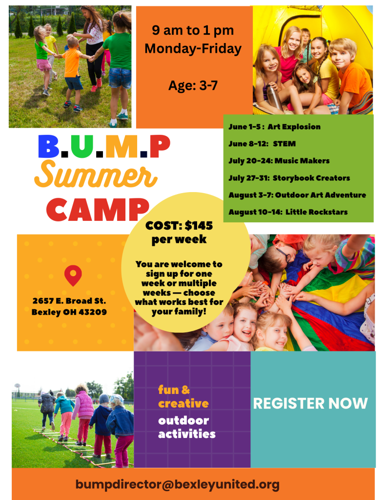 Enrollment for next school year at BUMP Preschool at Bexley United Methodist Church is now open — and we are already half full!